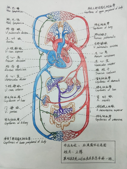 三等奖 基础医学院2016级临床医学本科1班王博作品-血液循环示意图