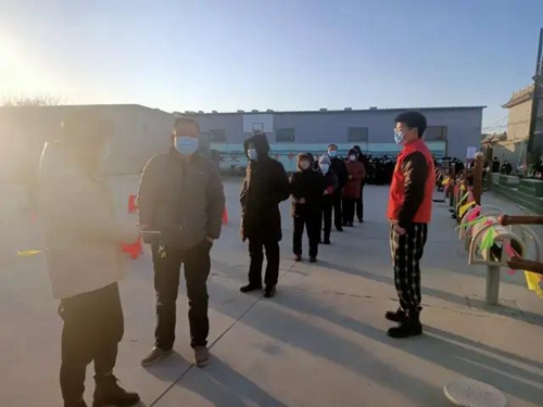 冬天路口的风总是很大,很冷,常常有大卡车拉货经过带起一阵阵冷风。尽管风猛天寒,但每次看见交警公安人员都在认真严谨地在岗工作时,我不禁肃然起敬,并更加严格要求自己。我想,正是因为有这些人,我们心中才会充满了抗疫情必胜的信心。 3.在做核酸现场 当我看到自己附近村庄新政村需要志愿者去协助医护人员做核酸检测时,我还是选择了积极踊跃地报名。到了新政村看到村口已经有人执勤,当村口的执勤人员得知我志愿者的身份时,说的那声“谢谢”,让我在这寒冬里感受到了浓浓的暖意。