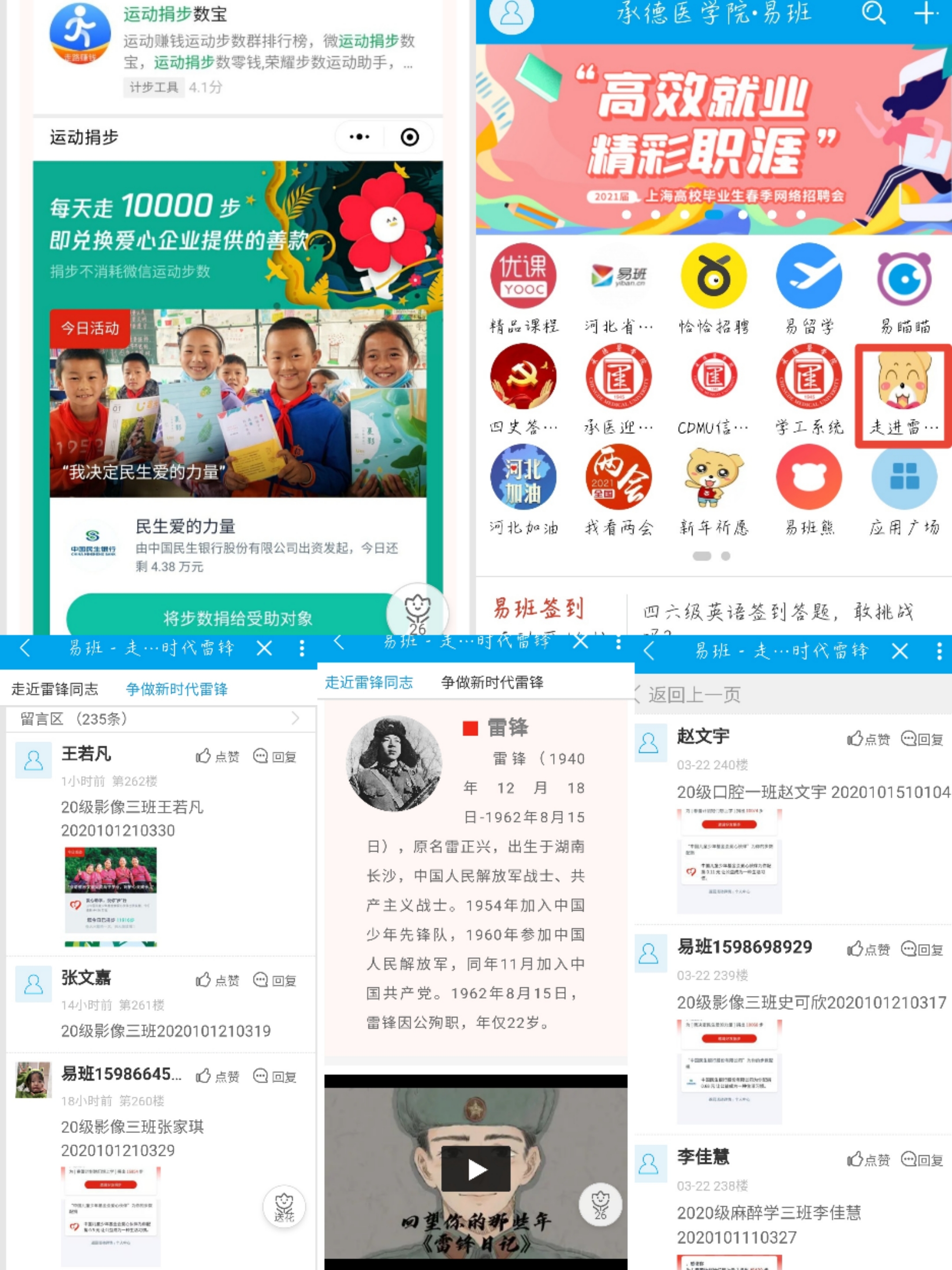 《雷锋日记》 发起万步捐款,以小事成大爱 三月是学习雷锋月,学习雷锋精神,处处奉献爱心。为弘扬奉献、互助的雷锋精神,本支部于易班APP发布“万步捐款”活动,号召年级广大学生参与其中,借微信小程序《运动捐步》分捐款,献爱心,志愿山区儿童成长。