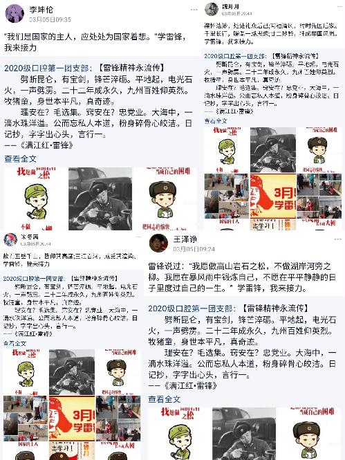 为响应习近平总书记“我们既要学习雷锋精神,也要学习雷锋的做法,把崇高理想信念和道德品质追求转化为具体行动,把雷锋精神代代传承下去”的倡导,2021年3月,基础医学院2020级口腔医学第一团支部举办“青春偕进学雷锋,志愿有我共担当”主题团日活动。 歌颂白衣天使,志愿疫情防控 辛丑年初,疫情突来,无数医务工作者星夜集合,白衣执甲,奔赴一线,用大爱筑成阻击新冠的钢铁长城。为传承精神,本支部李婧萁、王晴晴、张一笑等二十名学生借唱吧APP合唱歌曲《只要平凡》以MV《邂逅疫情下的爱》致敬白衣天使。