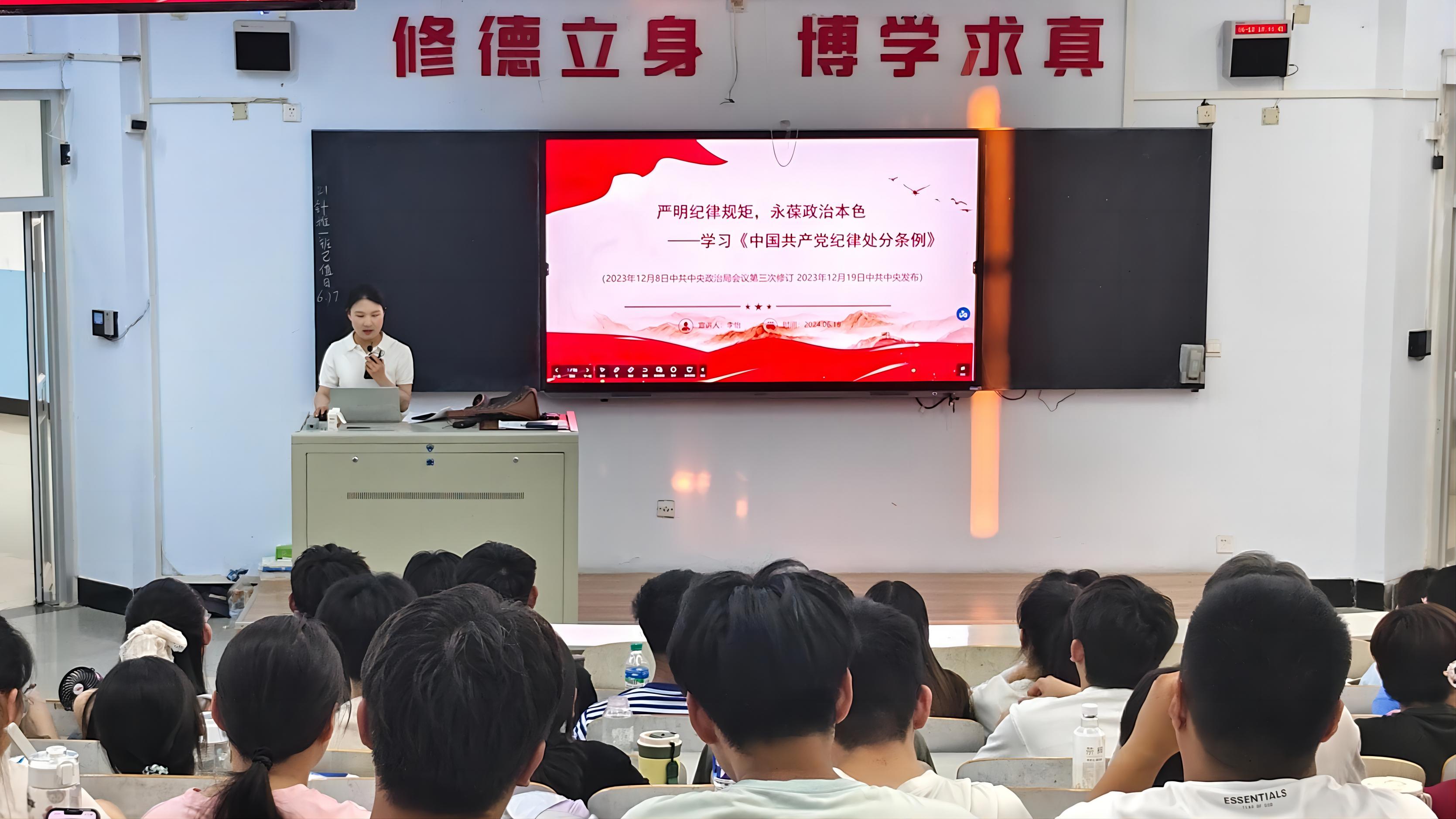 学生工作部(处)部长张文军作开班动员讲话 本次培训班邀请马克思主义学院教师进行授课,共分为四讲。李怡作《严明纪律规矩,永葆政治本色—学习<中国共产党纪律处分条例>》专题讲座,王超作《学条例 守党纪丨<中国共产党纪律处分条例>修订重点条文解读》专题讲座,梁文杰作《坚持以高质量发展为引领推进中国式现代化》专题讲座,周帅作《中国共产党历史上的党风廉政》专题讲座。通过本次培训,全体学生党员起到了以身作则的先锋模范作用,做到先学一步、深学一层,原原本本学、全面系统学、对照检查学、联系实际学,真正学出绝对忠诚、学出坚定信仰、学出使命担当、学出严明纪律。