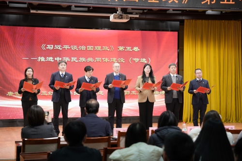 校党委不断创新理论中心组学习形式,在此次活动中取得显著成效。活动自启动以来,各二级党组织积极响应、精心筹备,在全校营造出“读原著、学原文、悟原理”的浓厚氛围。活动伊始,校党委书记唐世英,党委副书记、校长李玉红,党委副书记张学良、翟玉建,党委常委、副校长刘刚、郭玉成、王瑞婷率先登台,以集体朗诵的形式,紧扣“推进中华民族共同体建设”重大时代课题,深情阐释铸牢中华民族共同体意识的核心要义与时代价值,为整场活动作出生动示范。