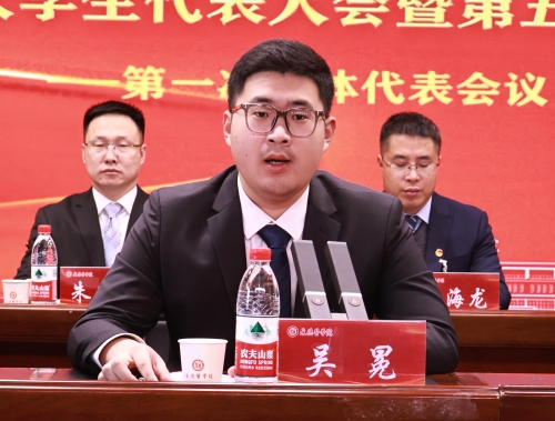 吴冕代表河北省学生联合会向我校学生代表大会的隆重召开致以热烈祝贺,并为校学生会、研究生会持续深化改革发展提供方向指引。