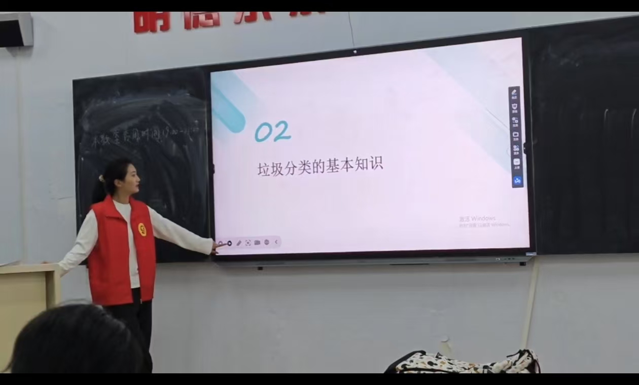 讲解环保知识 16日,志愿者们对学生宿舍进行安全卫生检查。评比内容包括是否违规用电、地面清洁、物品摆放、空气清新度及阳台卫生等方面。志愿者们认真细致地对存在安全隐患的插排、充电器等电器进行收纳管理,对地面、桌面、床铺等进行深度清洁与整理,确保每个宿舍都能做到安全规范、干净整洁。