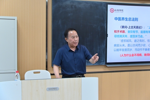 中华自然疗法世界总会会员、中医博士郑照顺作学术报告 我校张树峰、梁广和、杨志新教授作报告。张树峰教授从中医经典出发,以中医“治未病”理念为核心,将传统中医理论与现代生活相结合,深入阐述中医养生与健康管理,给出实用的健康管理建议。梁广和教授以“河图五行”为基础,深入剖析脾胃功能,解读五行与脾胃的关系,解读中医学调理脾胃的科学内涵。杨志新教授重点介绍“相对穴”概念及理论,结合多年临床经验,讲解其配穴方法与独特疗效,展现了针灸治疗的精妙之处。