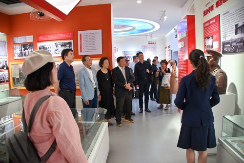 与来校嘉宾合影 活动当日,台方嘉宾、省台办领导先后参观了校史馆、中医文化长廊及中医实验中心,通过珍贵校史文献、文物展陈及影像资料,全面了解学校八十年的办学历程与历史贡献,以及学校在中医药教育、科研与文化传承领域的丰硕成果。