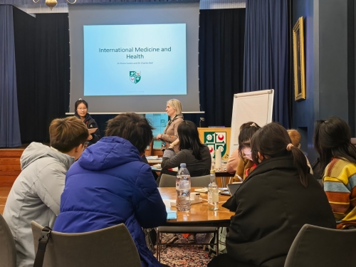 我校师生在剑桥大学合影 为确保研学成效,国际教育学院在出访前组织了系统性行前培训。培训内容不仅涵盖了签证办理、海外研学安排等事务性指导,还重点开展了国家安全教育、急救知识实操演练,全面提升了师生的海外适应能力与安全防范意识,为项目的顺利实施奠定了坚实基础。 剑桥大学研学期间,学生们参与了由剑桥大学组织的系列专题讲座与研讨会,内容覆盖微生物学、免疫学、预防医学、流行病学及药物治疗学等多个医学前沿领域。同学们沉浸于世界一流学府的学术氛围中,通过小组讨论、全英文课题汇报等形式,有效锻炼了学术表达与交流能力。他们不仅在课堂上专注听讲、认真记录,更在互动环节踊跃提问、深入探讨,展现出承医学子扎实专注、求真务实的风貌。在完成剑桥大学课程的同时,同学们还走进剑桥各学院和医院,了解英国医疗体系与医学生培养模式,以及英国医师执照考试等情况。
