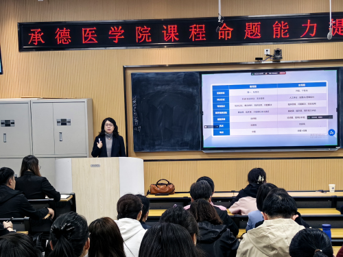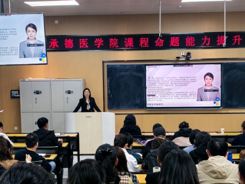 为深化医学教育评价改革,提升教师命题与教学评价能力,4月17日,高等医学教育研究室在教学楼108室成功举办“课程命题能力提升系列培训会”。学校党委常委、副校长王瑞婷出席并讲话。教务处和校教学督导组负责人、各教学院系及各教学医院一百五十余名教师参加培训。 本次培训特邀中国医科大学唐漫教授担任主讲。唐漫教授围绕医学教育标准、执业医师考试及考研西医综合等要求,系统阐述了医学命题规范与实操要点。她结合具体案例,深入剖析考点模糊、题干冗余、选项不规范等常见问题,并提出针对性改进建议。唐漫强调,考试命题必须紧扣本科教学大纲要求,聚焦核心知识与能力,避免超纲与专科化倾向,确保考试的有效性、科学性与公平性。在互动环节,参训教师就临床案例融入命题、跨学科试题设计、认知层级设计等问题进行了交流探讨。
