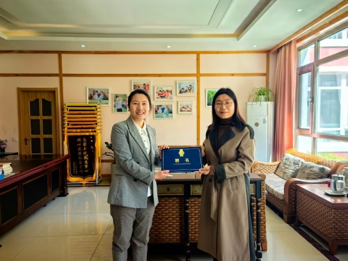 为两家企业授予“实践基地”牌匾 考察团首站来到北京心雨滴健康咨询有限责任公司,公司负责人、我校心理学系2008届优秀校友王丹丹热情接待了母校领导和老师,详细介绍了企业发展情况,并对未来校企合作进行了展望。王瑞婷现场为王丹丹颁发行业导师聘书。